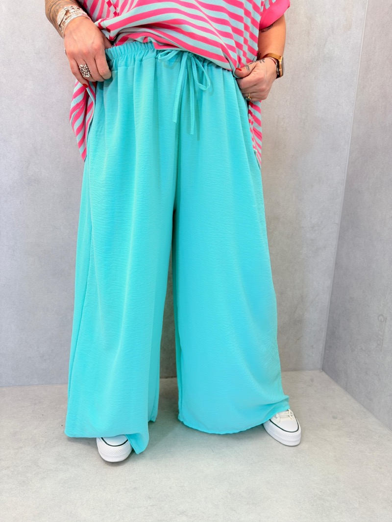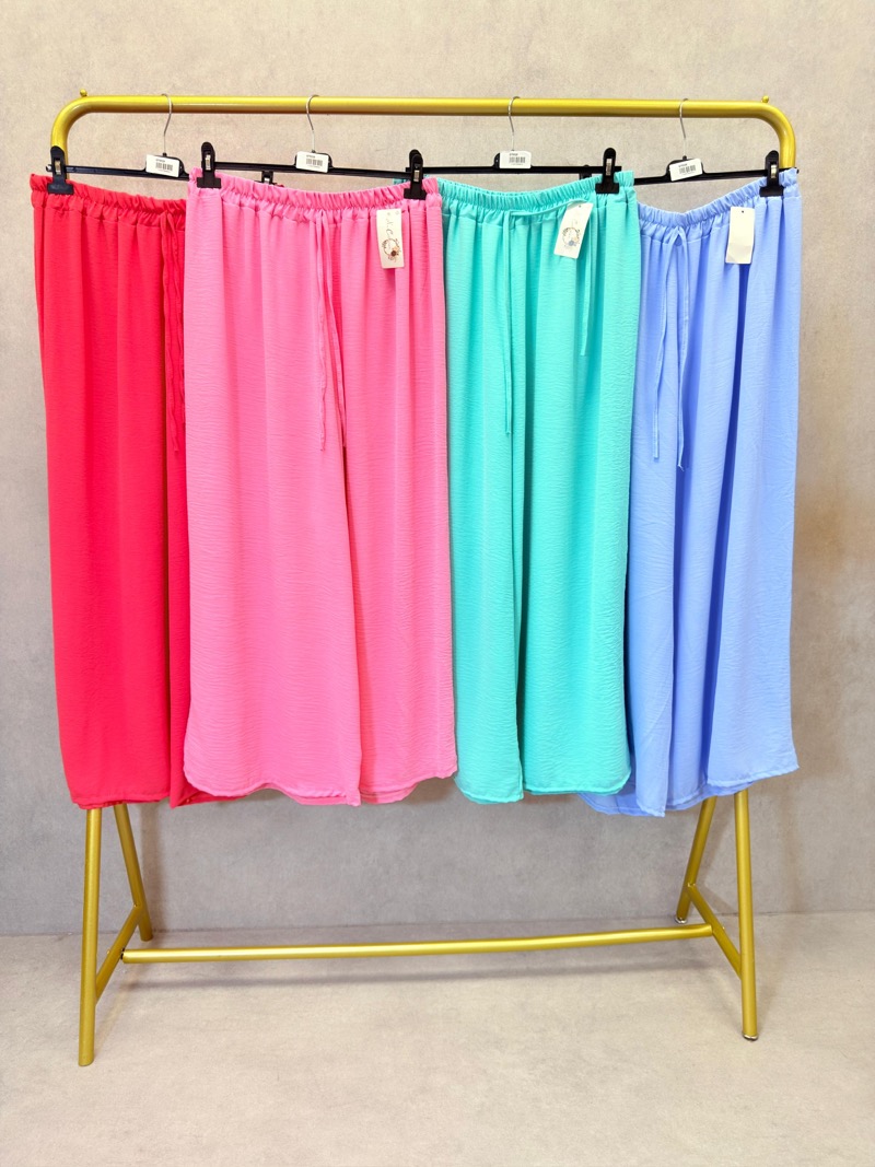 Ce pantalon fluide et coloré est parfait pour ajouter une touche de gaieté à votre garde-robe. Légèrement évasé, il offre confort et style pour toutes les occasions.