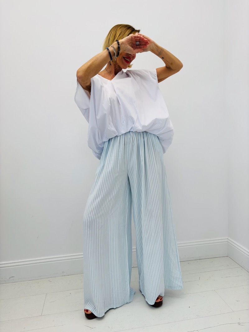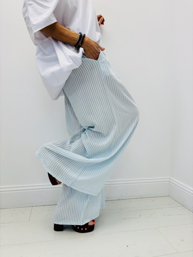 Découvrez le confort et la légèreté de notre pantalon fluide rayé, idéal pour une allure décontractée et stylée. Sa coupe ample et ses motifs rayés apportent une touche moderne à votre tenue.