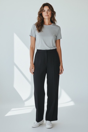 Conçu sans ressort, il offre une tenue nette et élégante, parfaitement adaptée à un style chic et contemporain. La matière fluide assure un tombé naturel et une belle amplitude de mouvement, tout en conservant une allure soignée. Ce pantalon est aussi agréable à porter au quotidien que facile à intégrer dans des looks plus habillés.