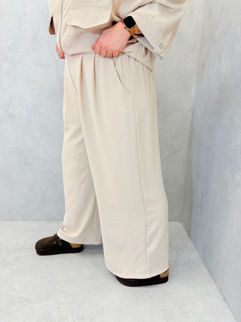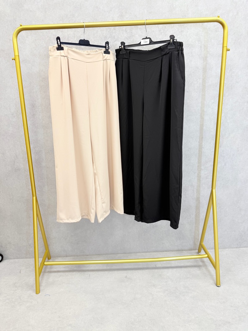 La coupe large allonge visuellement la silhouette et apporte une élégance naturelle. Ce pantalon convient aussi bien aux clientes recherchant du confort qu’à celles souhaitant une pièce chic et facile à porter. Il peut être porté taille haute ou légèrement plus bas selon la morphologie et les préférences, ce qui en fait un modèle polyvalent et rassurant.