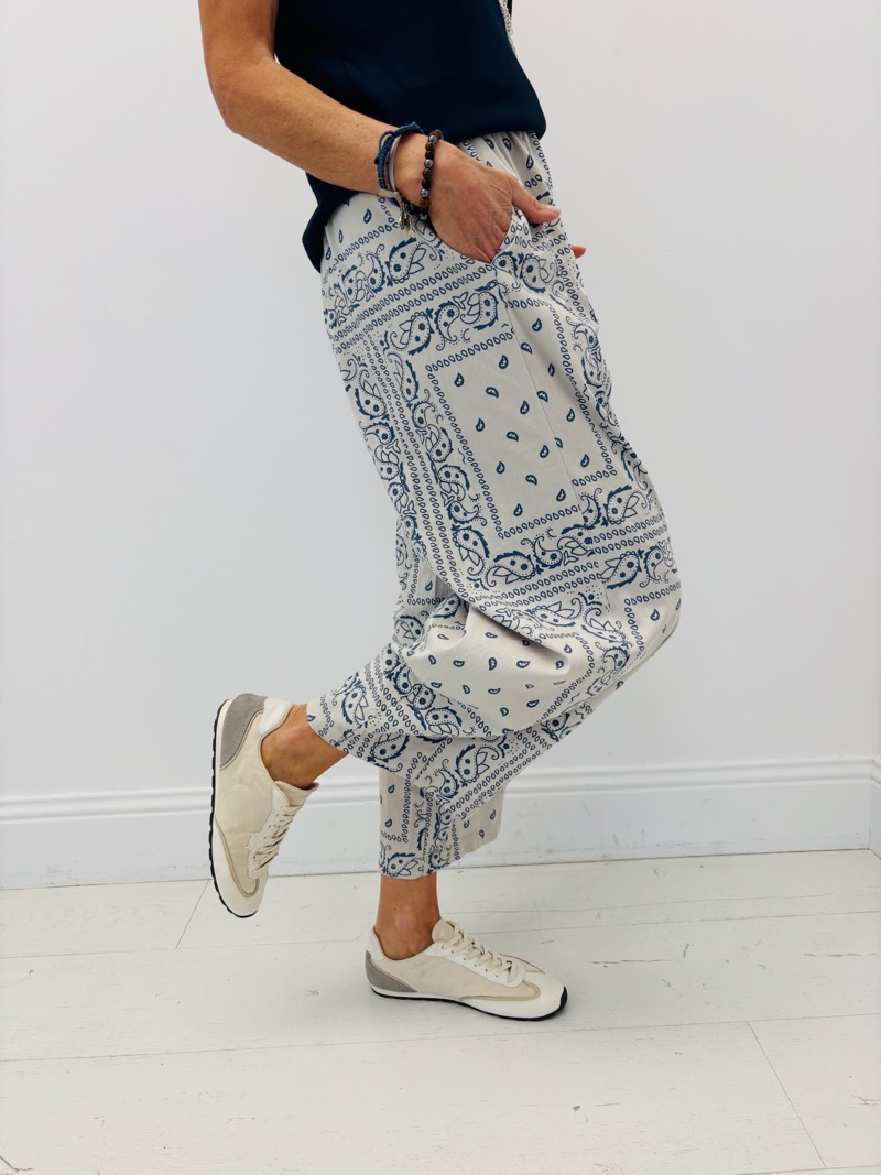 Ce pantalon imprimé bandana est une pièce forte et tendance, parfaite pour une collection estivale à l’esprit casual chic. Confectionné en coton majoritaire, il offre légèreté, confort et respirabilité, idéal pour un porté au quotidien.