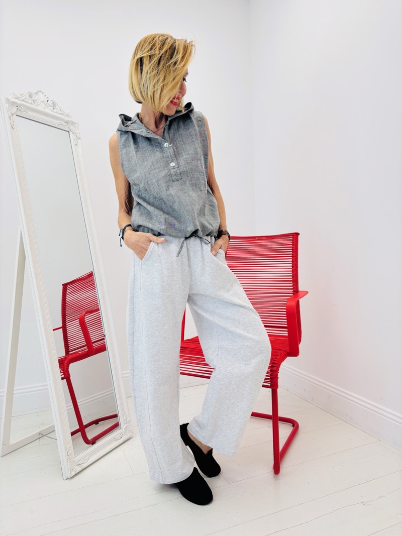 Ce modèle en coton de haute qualité procure une douceur incomparable au toucher, et sa couleur grise claire s’accorde facilement avec toute votre garde-robe, faisant de ce jogg un incontournable de votre quotidien.