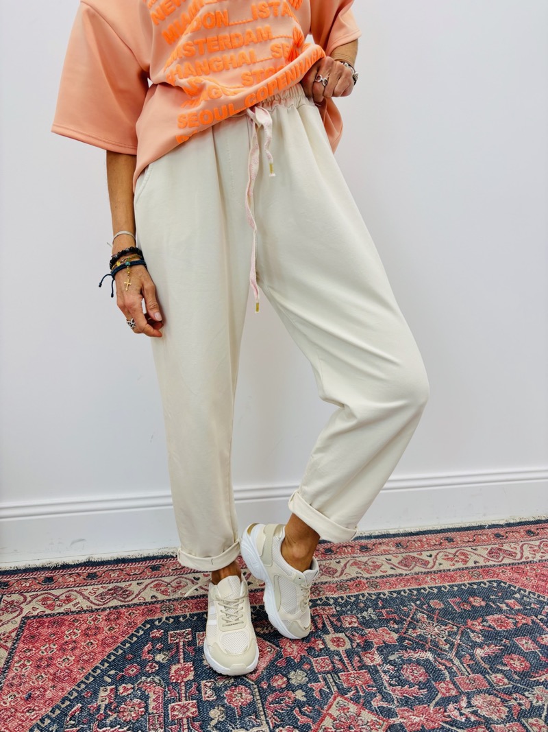 Proposé en plusieurs coloris doux et lumineux, ce pantalon jogg est facile à associer et répond parfaitement aux attentes d’une clientèle à la recherche de pièces confortables, tendance et faciles à vendre en boutique.