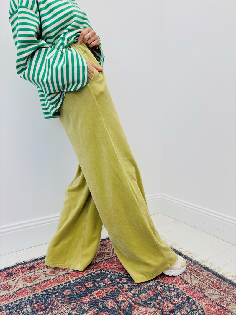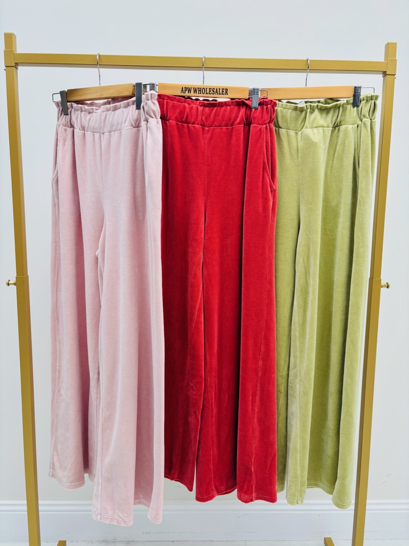 Sa taille élastiquée assure un maintien confortable sans comprimer, tandis que la coupe large et fluide allonge la jambe et apporte une vraie modernité au look. Le velours capte subtilement la lumière, donnant au pantalon un aspect chic et chaleureux, idéal pour la mi-saison comme pour les périodes plus fraîches.