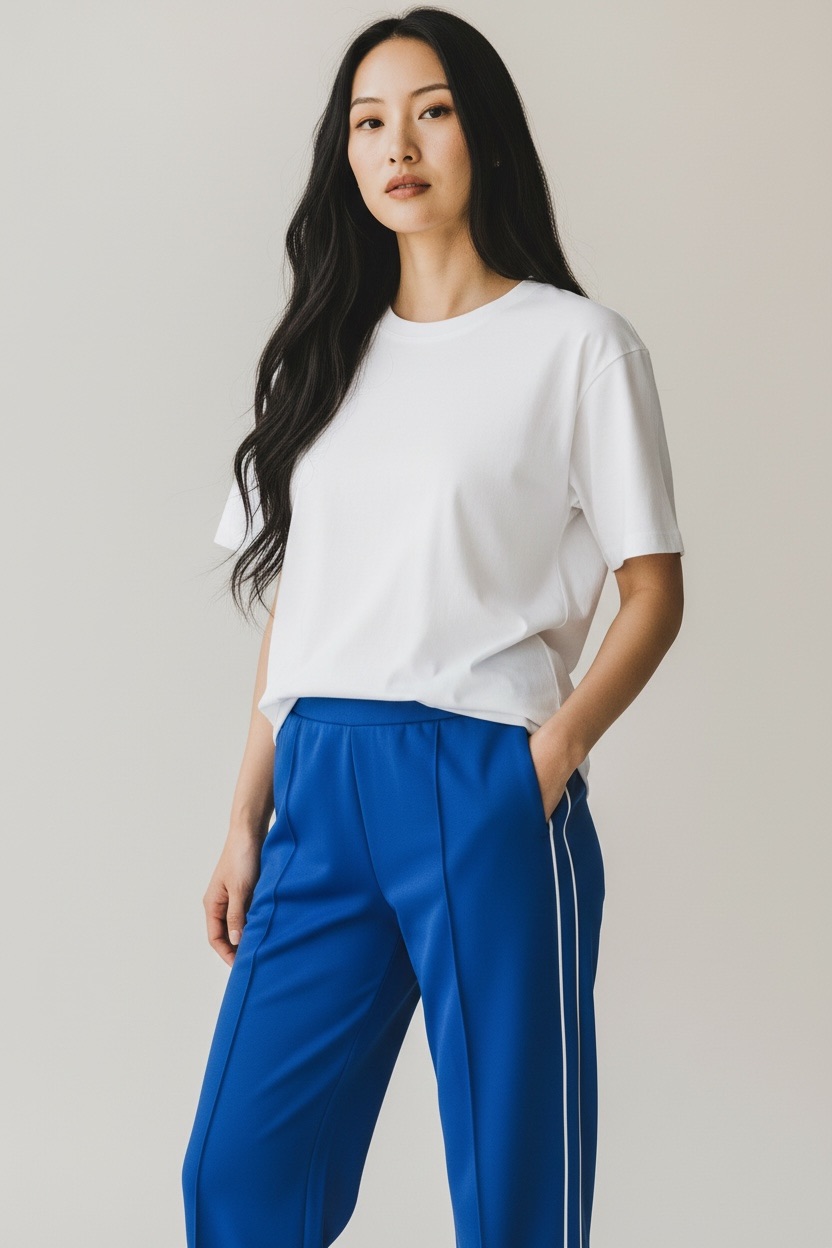 Sa coupe large et fluide allonge la silhouette tout en assurant un maximum de confort. Les bandes contrastées sur les côtés apportent une touche graphique et dynamique, renforçant l’inspiration casual chic du modèle. La taille élastiquée garantit un ajustement facile et confortable, sans compromis sur le style.