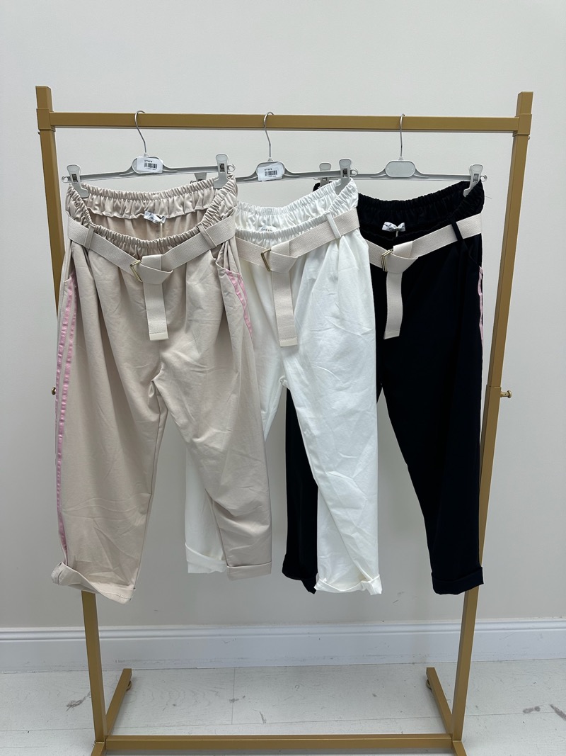 Sa coupe confortable adaptée aux silhouettes grande taille offre une aisance idéale sans alourdir la silhouette. La taille élastiquée assure un maintien parfait et s’adapte naturellement aux courbes, tandis que la ceinture large décorative ton beige apporte une vraie valeur ajoutée mode. Ce détail structurant souligne la taille et donne immédiatement un effet travaillé, presque habillé, à ce jogging revisité.
