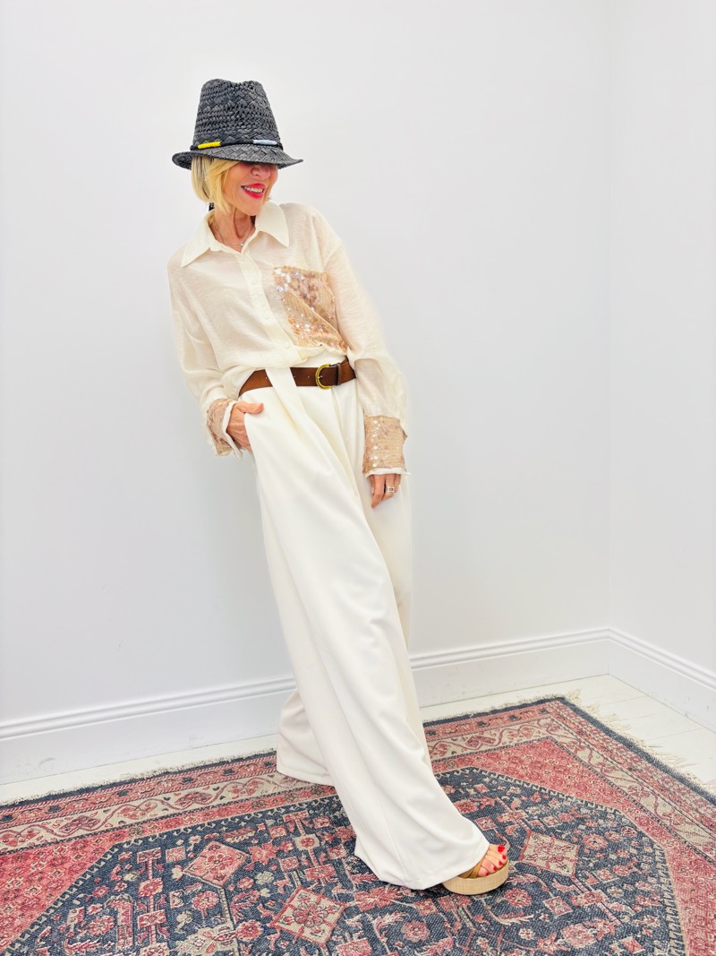 Associé à une chemise fluide légèrement rentrée, il crée une silhouette sophistiquée et équilibrée. Il fonctionne parfaitement avec une ceinture en cuir pour structurer la taille et apporter du contraste.