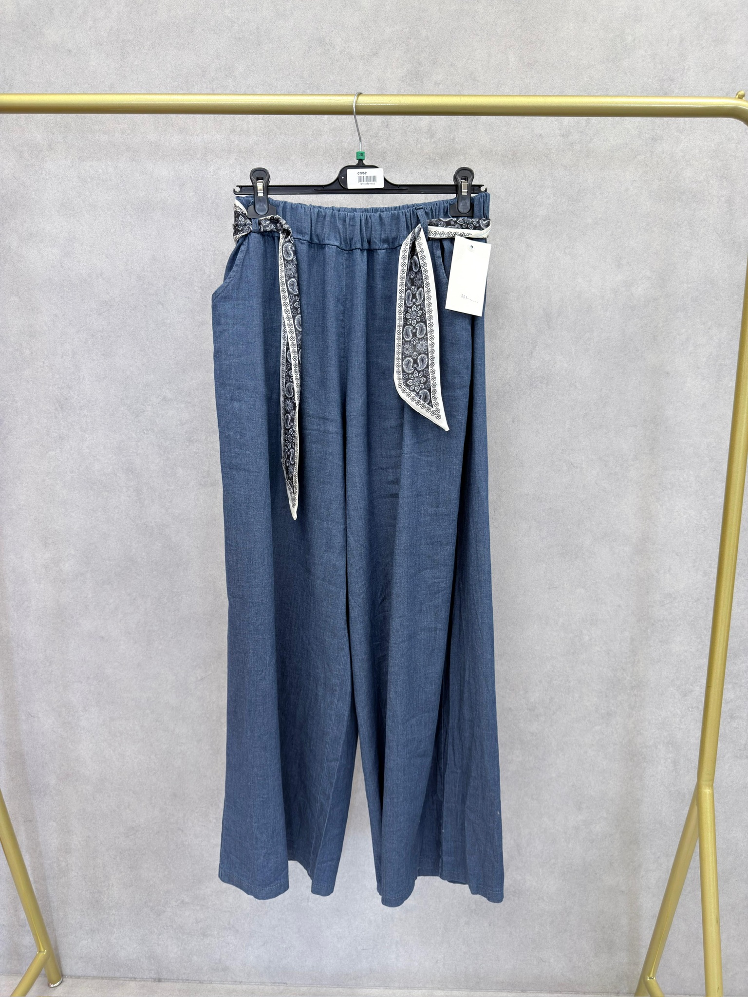 Pantalon Large Denim Fluide – Ceinture Foulard