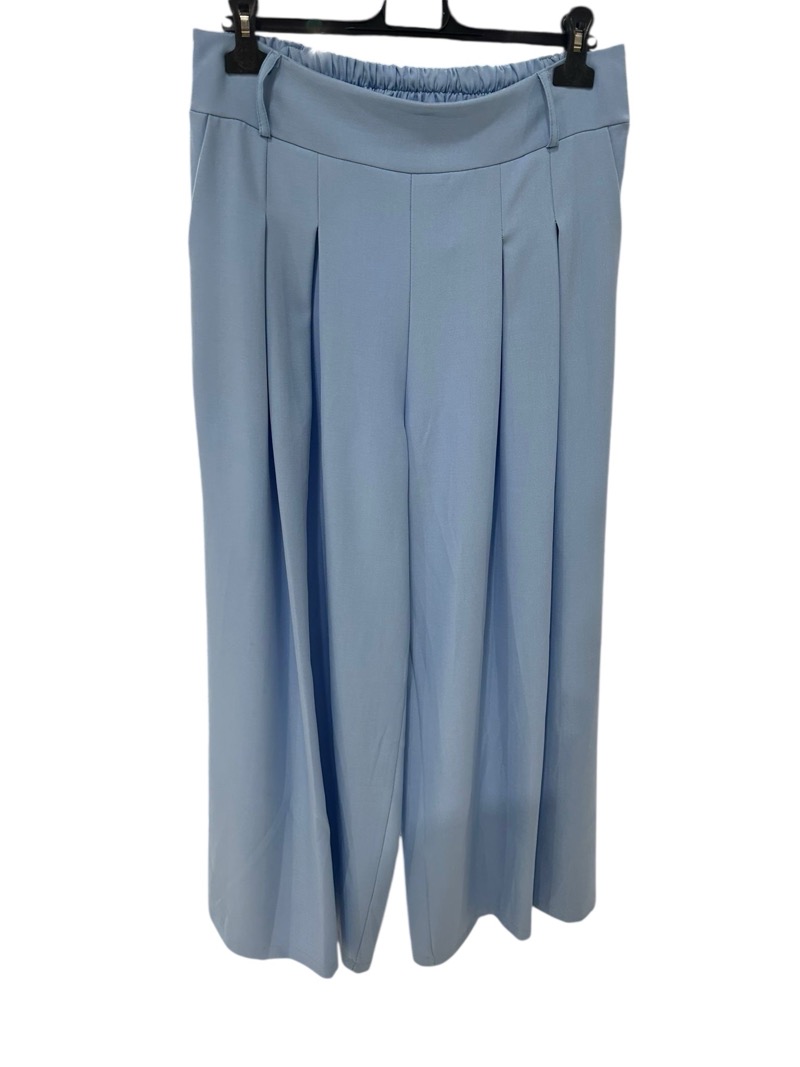 Ce pantalon se porte aussi bien avec une blouse fluide, une chemise rentrée, ou un top près du corps pour équilibrer les volumes. Pour un look chic, associez-le à une veste blazer et des sandales à talons. Pour une tenue plus décontractée, il se marie parfaitement avec un t-shirt et une paire de baskets. Un modèle polyvalent, idéal pour une allure élégante, féminine et confortable en toutes circonstances.