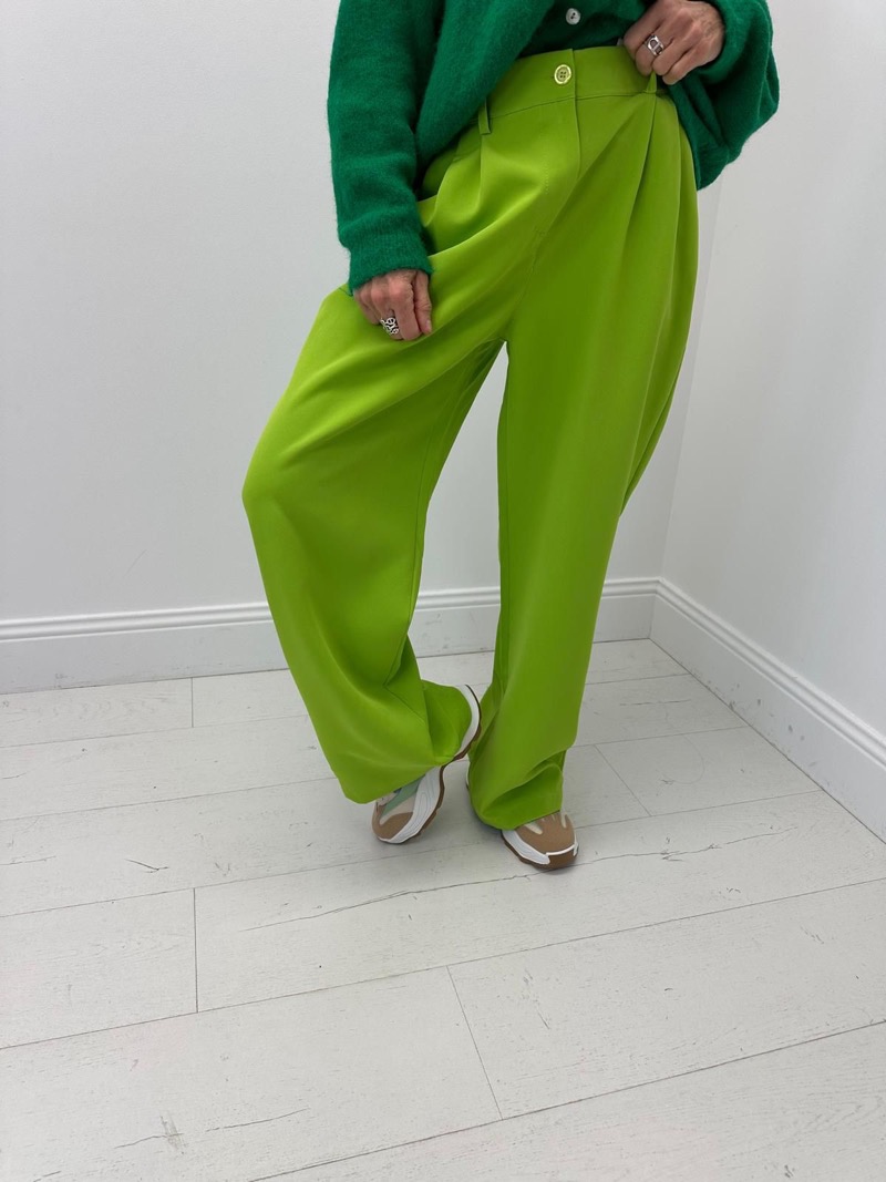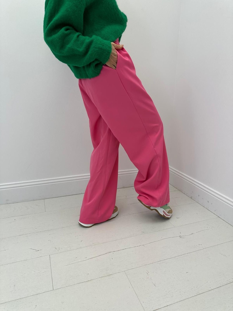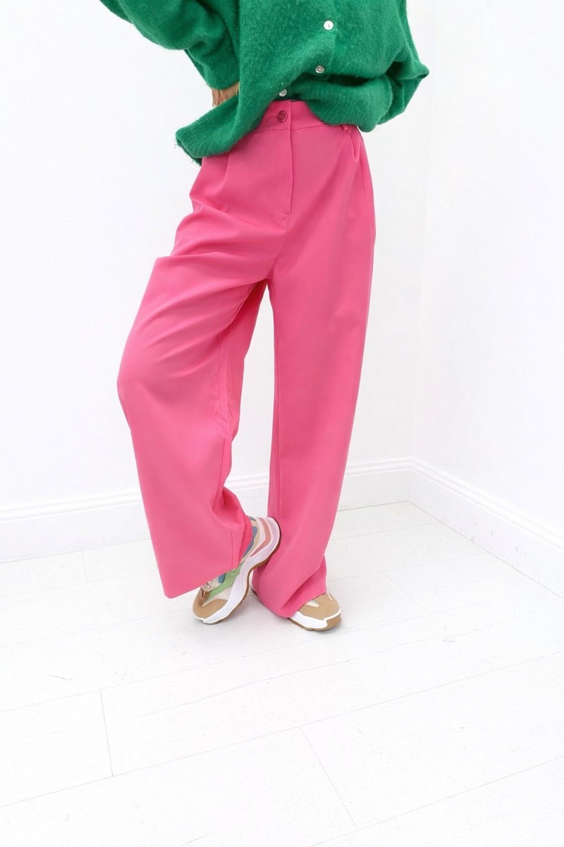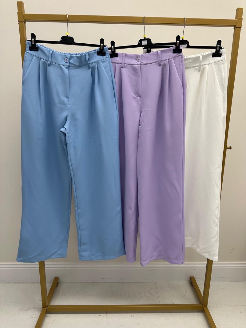 Sa ceinture est dotée de passants, d’une fermeture boutonnée et d’une finition nette qui souligne le côté habillé du modèle. La coupe large et droite convient à de nombreuses morphologies et permet une grande liberté de mouvement. Proposé dans des coloris lumineux et actuels – bleu ciel doux, lilas délicat et blanc intemporel – ce pantalon s’intègre parfaitement aux collections printemps-été comme aux looks plus habillés de mi-saison.
