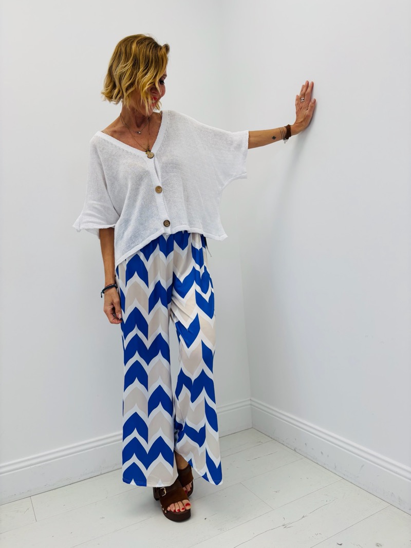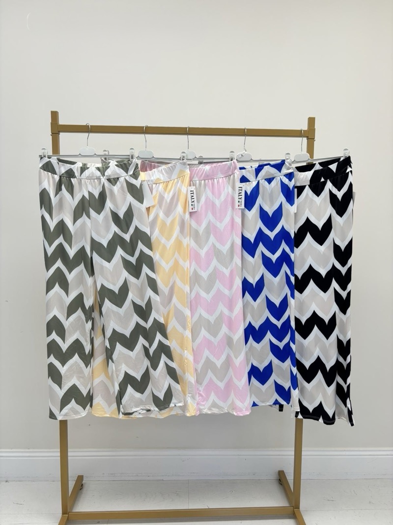 Ce modèle utilise un motif en chevrons audacieux qui se décline en plusieurs couleurs tendance, idéales pour égayer votre garde-robe estivale.