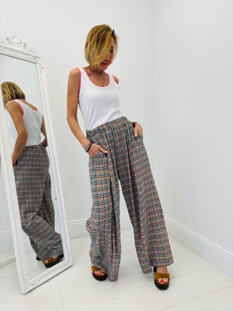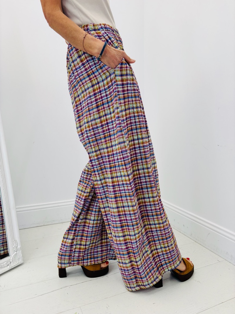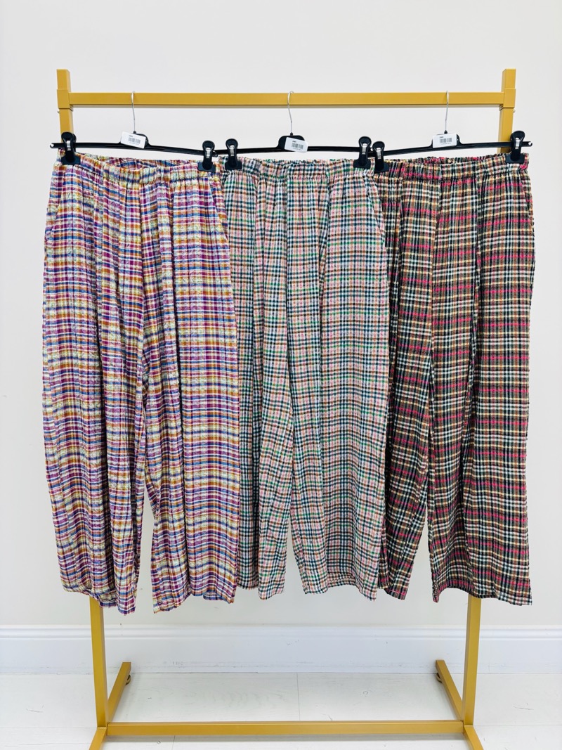 Pantalon Motif Madras Effet Gaufré