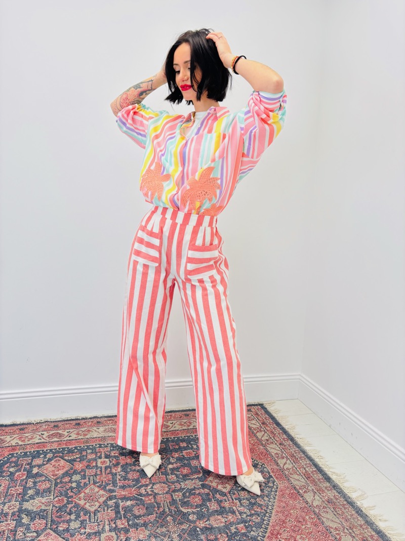 Ce pantalon rayé en coton est une pièce forte au style estival et tendance, idéale pour apporter de la couleur et du caractère à une collection prêt-à-porter féminin. Son motif à rayures verticales allonge visuellement la silhouette tout en offrant une allure à la fois moderne, fraîche et facile à porter. C’est un modèle à fort potentiel commercial, parfait pour les boutiques recherchant des pièces originales mais accessibles.
