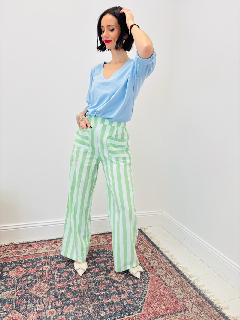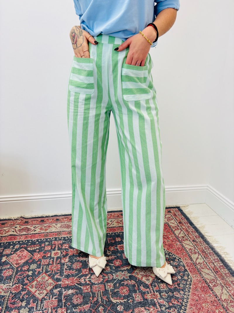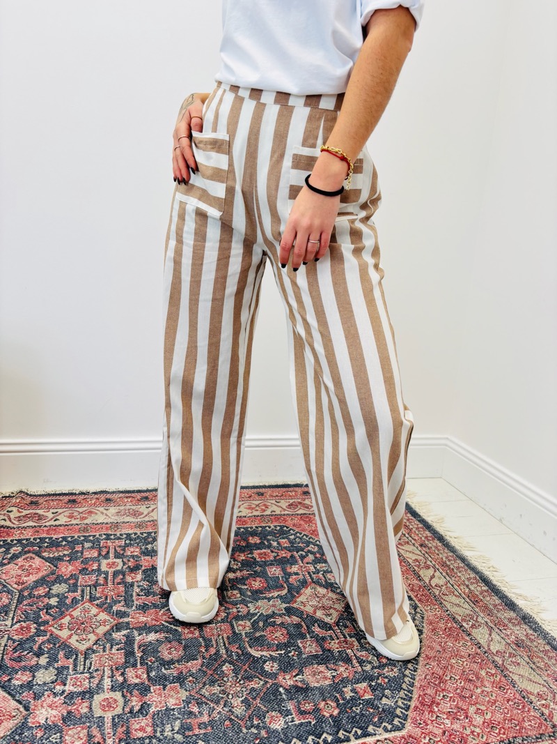 Décliné en plusieurs coloris rayés, ce pantalon permet de varier les propositions en boutique et de créer des looks dynamiques et lumineux. Il se combine facilement avec des pièces unies et devient rapidement un incontournable pour une clientèle à la recherche de vêtements tendance, confortables et faciles à associer.