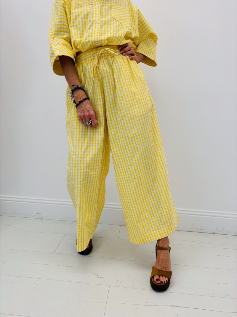 Un pantalon au charme intemporel qui revisite le célèbre motif vichy avec une coupe large et moderne. Confortable et élégant, il incarne parfaitement l’esprit estival entre décontraction et style.