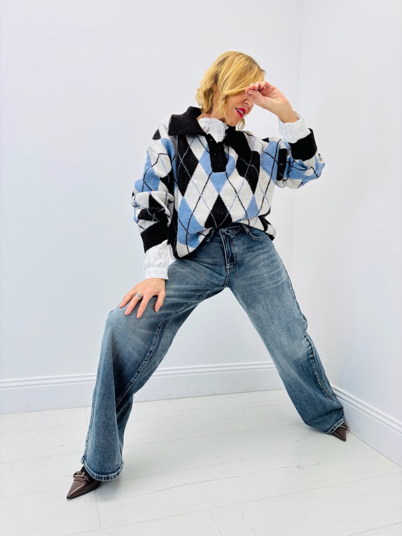 ce modèle permet de proposer en boutique autant des looks classiques que des looks plus fashion. Le motif losange, emblématique et indémodable, apporte de la structure et met en valeur la silhouette.