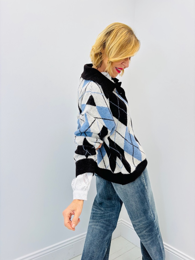 Polo Pull Motif Argyle BURLINGTON – Style Rétro-Chic & Confort Douillet