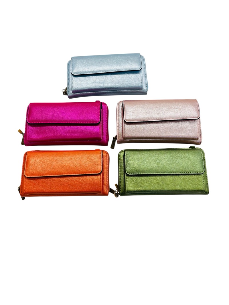 Ce porte-monnaie au design élégant et moderne séduit par son effet métallisé lumineux qui apporte une touche chic et raffinée. Son format pratique permet d’organiser facilement les essentiels du quotidien tout en restant compact et facile à glisser dans un sac.