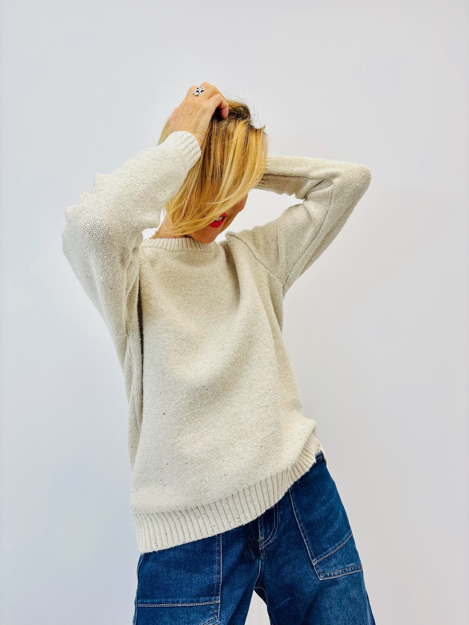 Ce modèle signé VALENTYNE est confectionné dans une maille douce et souple ornée de sequins ton sur ton pour une touche scintillante tout en subtilité.