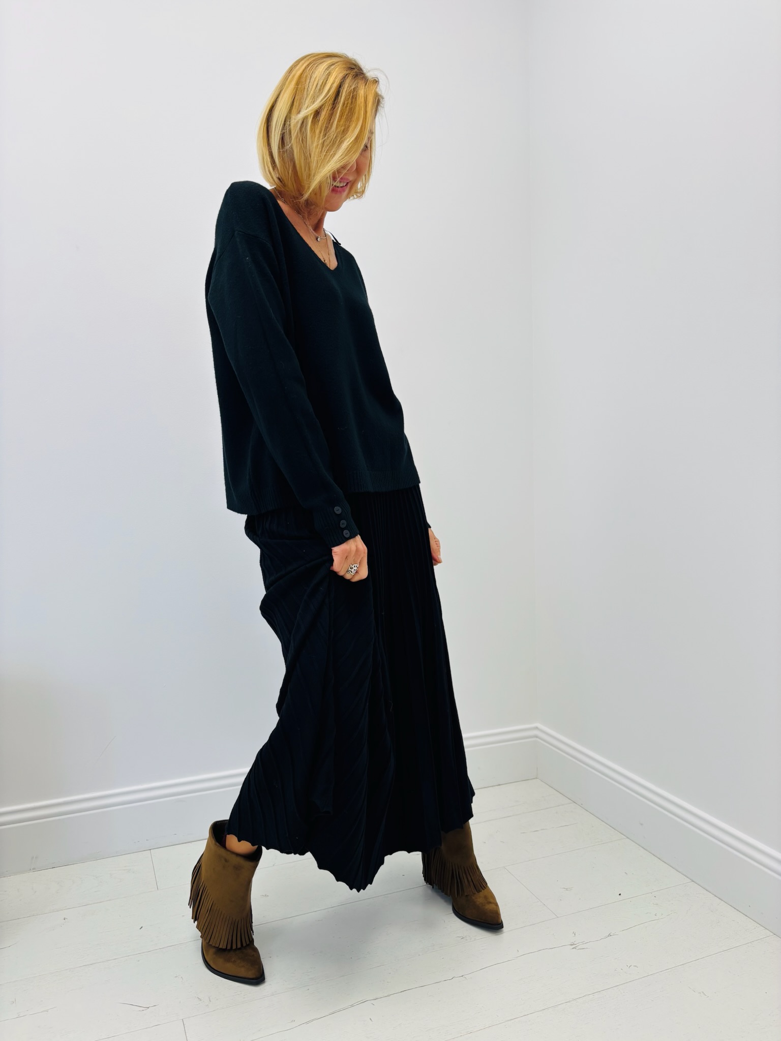 À porter avec une jupe plissée pour une allure chic et fluide, ou avec un pantalon droit pour un look plus urbain. Superbe également superposé sur une chemise blanche pour un effet preppy.