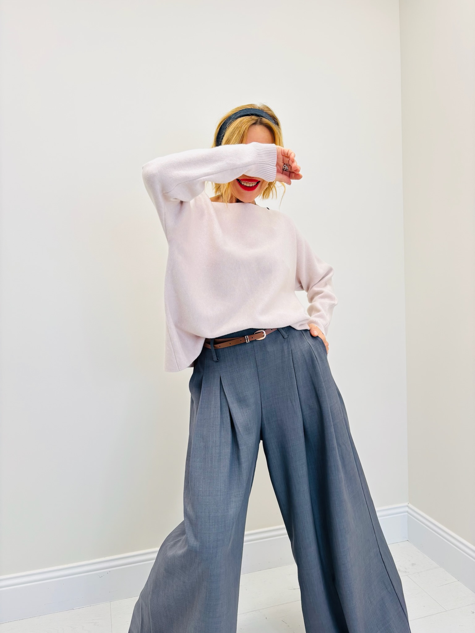 À porter rentré dans un pantalon large ou une jupe midi pour une allure élégante, ou avec un jean brut pour un effet casual chic.