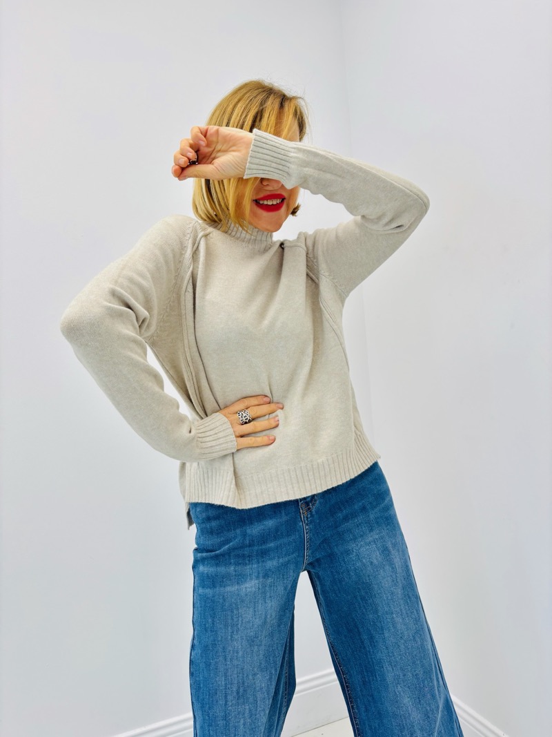 Porté avec un jean large ou droit, ce pull crée une silhouette moderne et équilibrée. Il s’associe parfaitement avec des baskets pour un look casual chic ou avec des bottines pour une allure plus habillée. Une pièce facile à porter et à styliser, idéale pour le quotidien comme pour des looks plus travaillés.