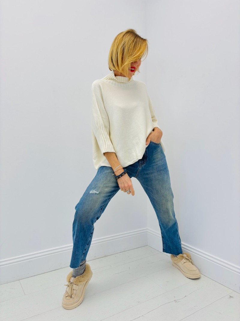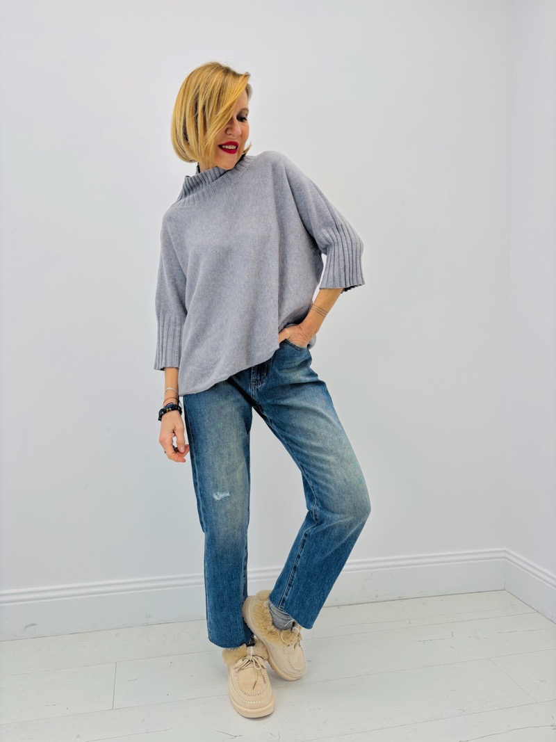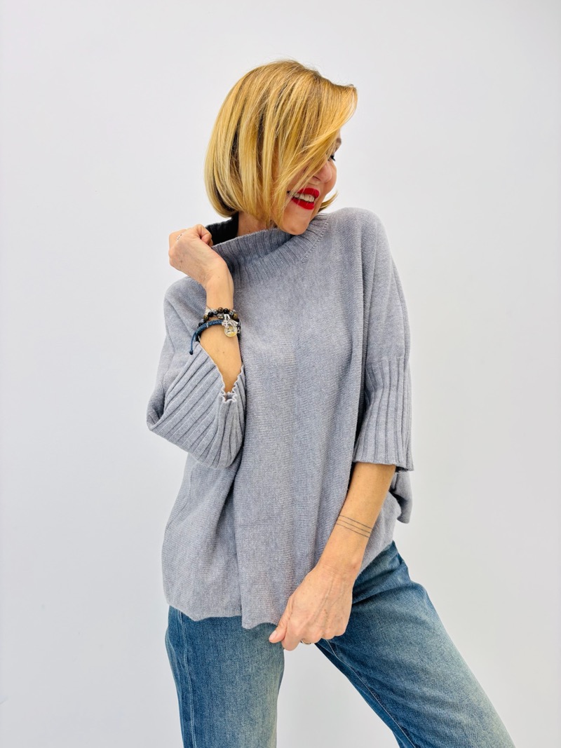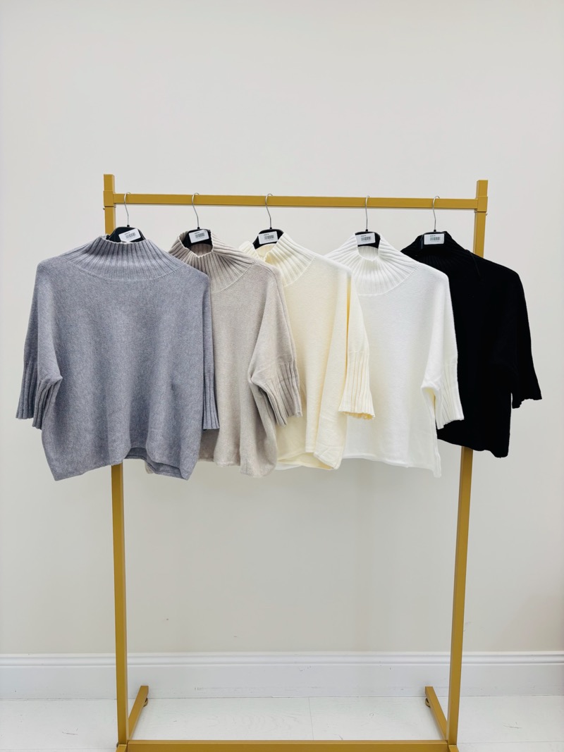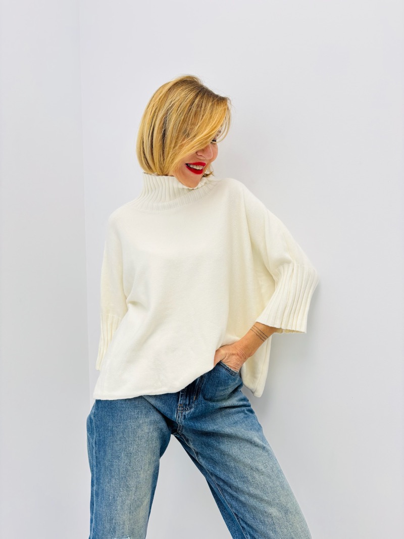 Pull Col Montant manches 3/4 en maille fluide
