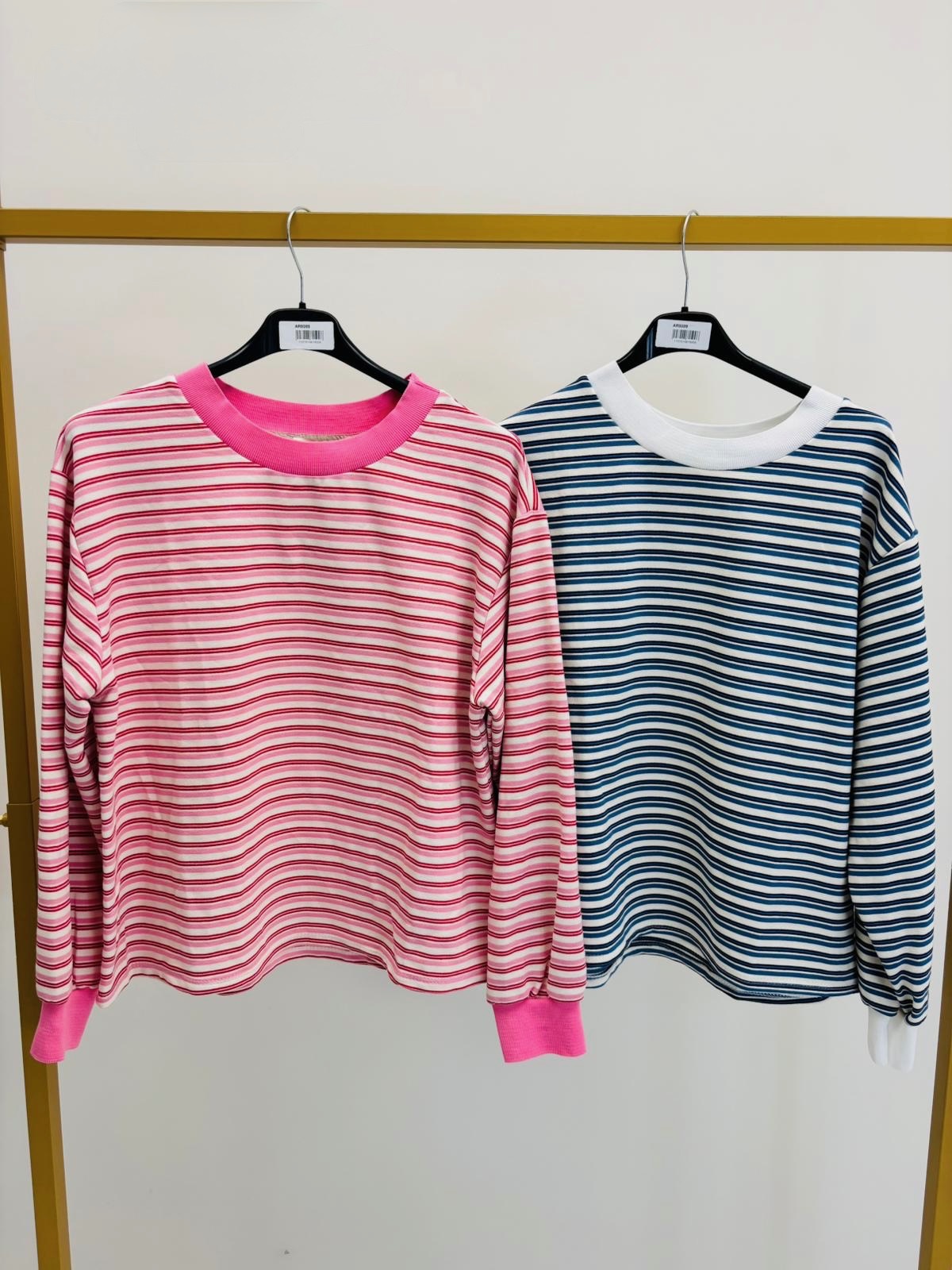 La matière, enrichie en viscose, offre une belle fluidité, un tombé souple et une sensation de douceur sur la peau. Ce pull est parfait pour les boutiques recherchant une pièce facile à vendre, polyvalente et adaptée à une large clientèle. Il se décline en plusieurs coloris rayés, permettant de varier les propositions en vitrine et en assortiment.