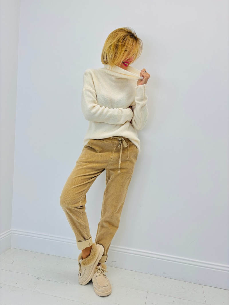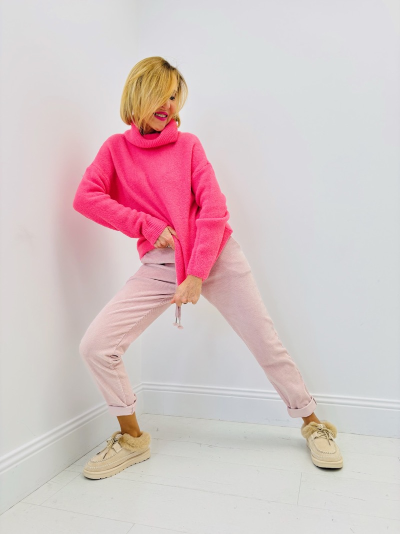 Porté avec un pantalon en velours, un jean ou un pantalon casual, ce pull col roulé crée une silhouette chaleureuse et tendance. Il s’associe parfaitement à des baskets, des boots ou des chaussures fourrées pour un look cosy chic. Pour une tenue plus structurée, il peut être porté avec un manteau long ou une veste oversize, faisant de lui une pièce forte et élégante, idéale du quotidien aux looks plus travaillés.