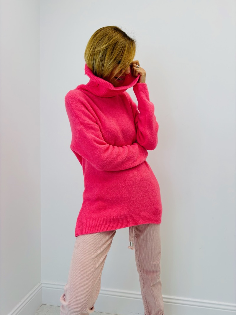 Sa maille légèrement duveteuse apporte un aspect chaleureux et premium, tout en restant légère au porter. Le col roulé ample et souple protège agréablement le cou sans sensation de compression, renforçant l’esprit cocooning de la pièce. La coupe droite, subtilement oversize, permet un tombé fluide qui convient à différentes morphologies tout en conservant une allure moderne et féminine.