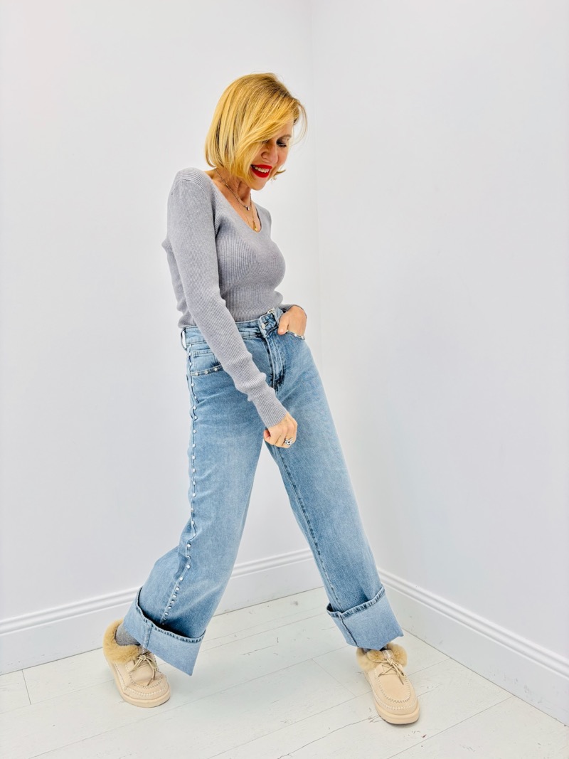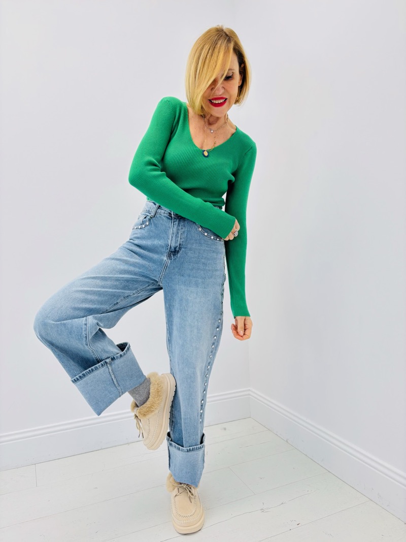 Porté avec un jean taille haute, ce pull crée une silhouette moderne et féminine, parfaite pour le quotidien. Il se marie aussi bien avec des baskets pour un look casual chic qu’avec des bottines ou des mocassins pour une allure plus habillée. Une pièce facile à associer, idéale pour composer des tenues simples, efficaces et tendance.