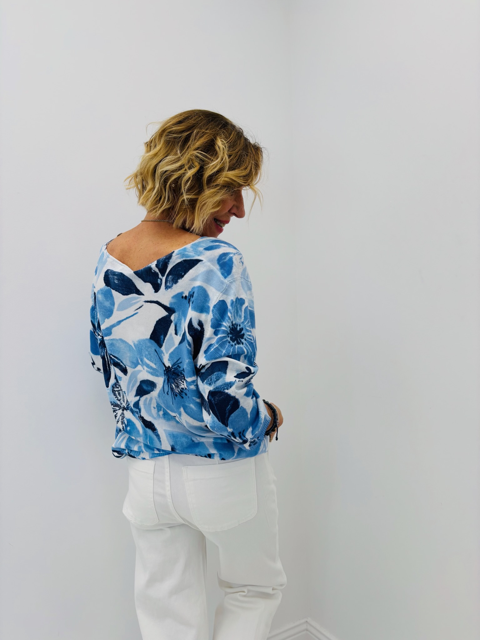 Pull col V imprimé floral