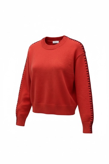 Ce pull se porte facilement avec un pantalon tailleur ou un jean pour une allure casual chic, ou en association avec un pantalon imprimé pour un look plus mode et assumé. Les coutures apparentes apportent une touche graphique qui structure la silhouette, faisant de ce pull une pièce forte du vestiaire féminin contemporain.