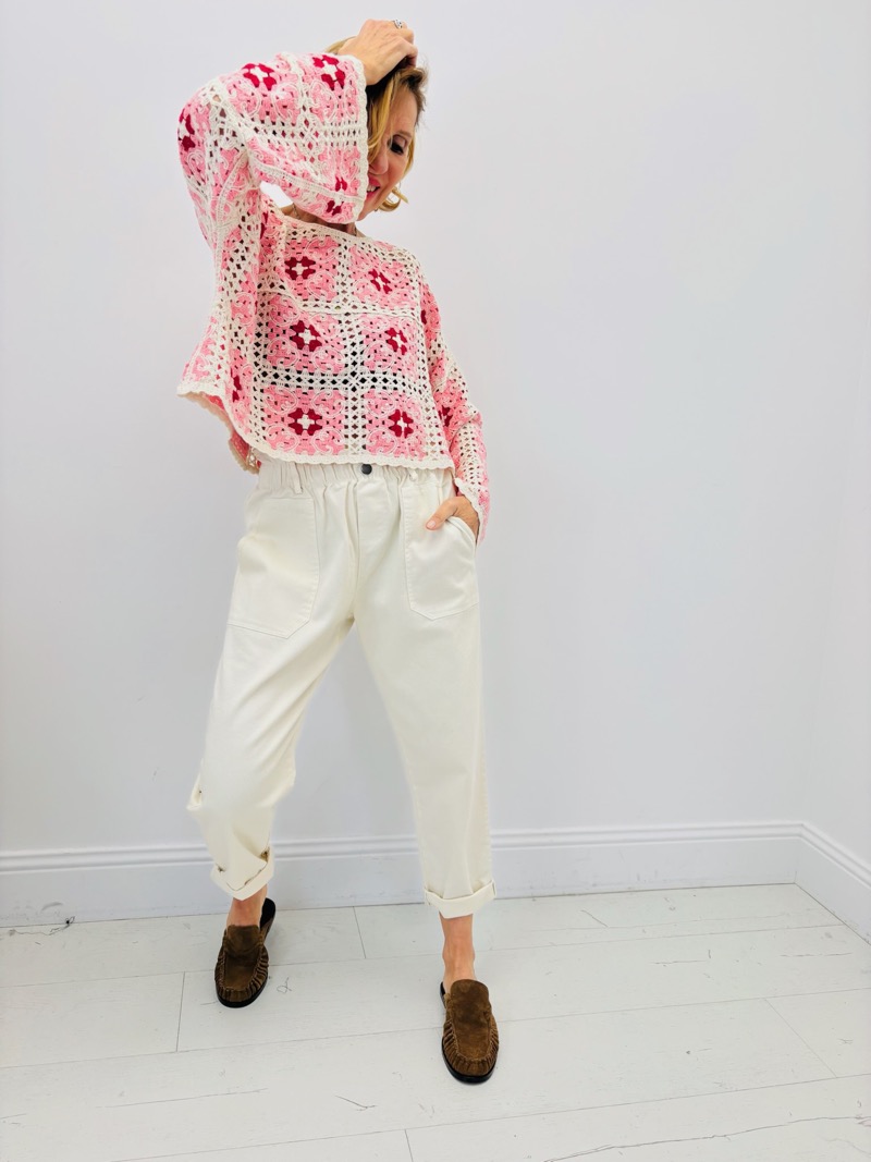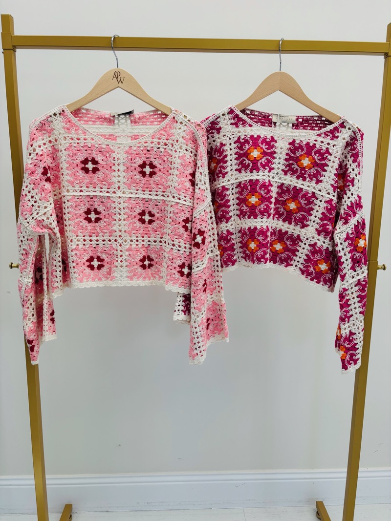 Ce pull en crochet incarne parfaitement l’esprit bohème chic avec un travail artisanal riche en détails. Confectionné en coton, il séduit par son motif crochet délicatement structuré qui mêle différents carrés décoratifs pour créer un patchwork élégant et plein de caractère.