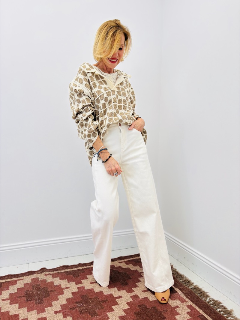 ✔ Avec un jean large pour une silhouette bohème moderne