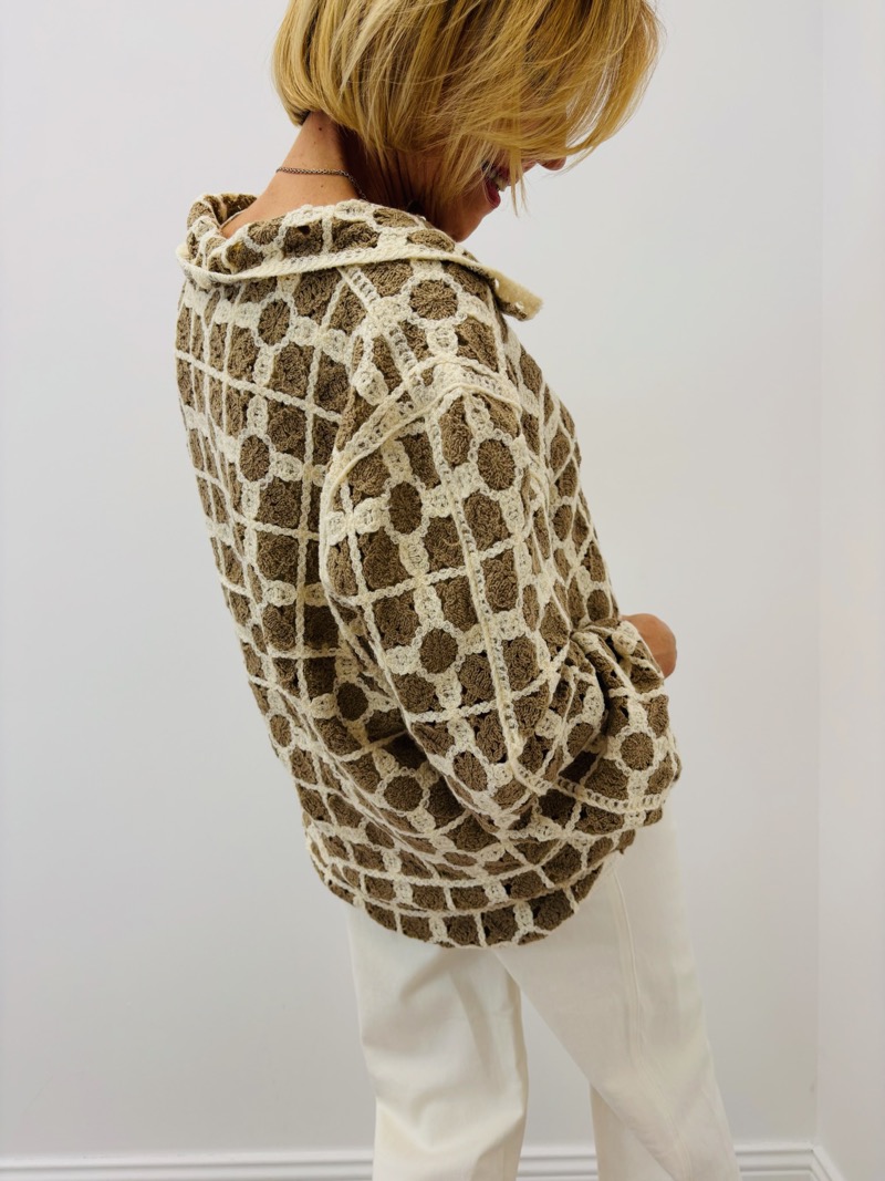 Un pull crochet à fort impact visuel, parfait pour une clientèle qui aime les pièces texturées et originales ✨