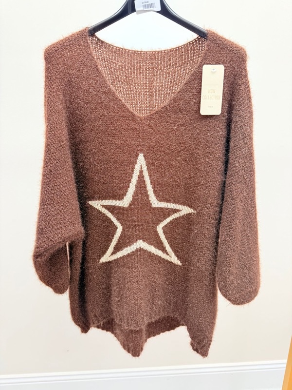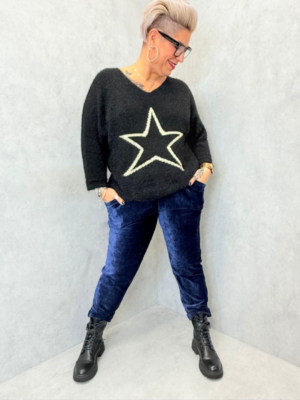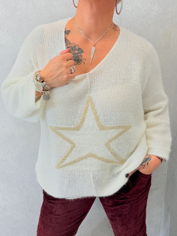 Un indispensable cocooning pour la saison ! Ce pull grande taille séduit par sa maille duveteuse ultra douce et son grand motif étoile contrasté à l’avant, pour un look à la fois décontracté et tendance.