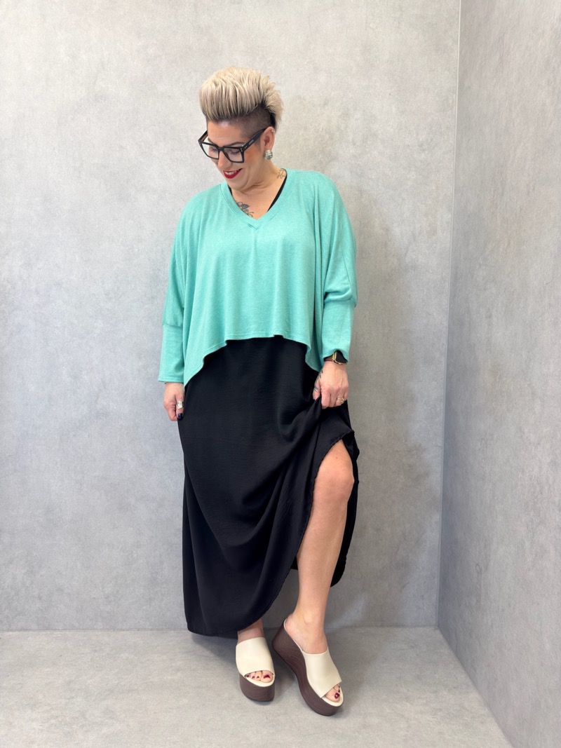 Confectionné dans une maille douce et légère, ce pull est idéal pour la mi-saison comme pour les superpositions en toute saison. Son col V flatteur allonge visuellement la silhouette et met délicatement en valeur le décolleté, tandis que les manches amples apportent une allure fluide et contemporaine. La coupe légèrement courte sur le devant, associée à un tombé souple, permet un porté naturel et harmonieux, aussi bien sur un pantalon que sur une jupe ou une robe.