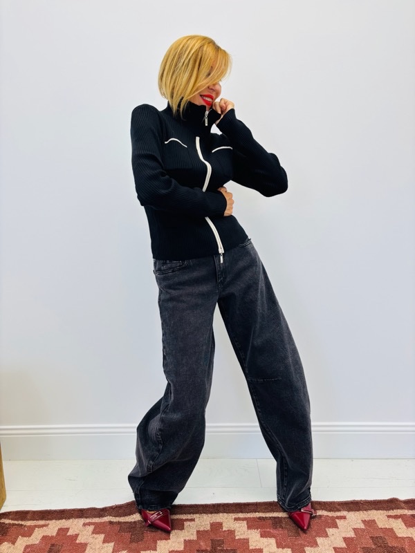 ❤️ On aime : son côté hybride entre pull et gilet, parfait pour un look casual chic avec un jean ou plus pointu avec une jupe taille haute.