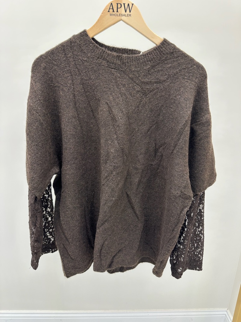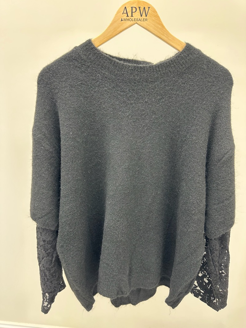 Ce pull grande taille séduit par son allure raffinée et sa texture douce et moelleuse. Sa maille légèrement duveteuse offre un toucher cocooning irrésistible, tandis que ses manches longues en dentelle ton sur ton apportent une touche féminine subtile et pleine de charme.