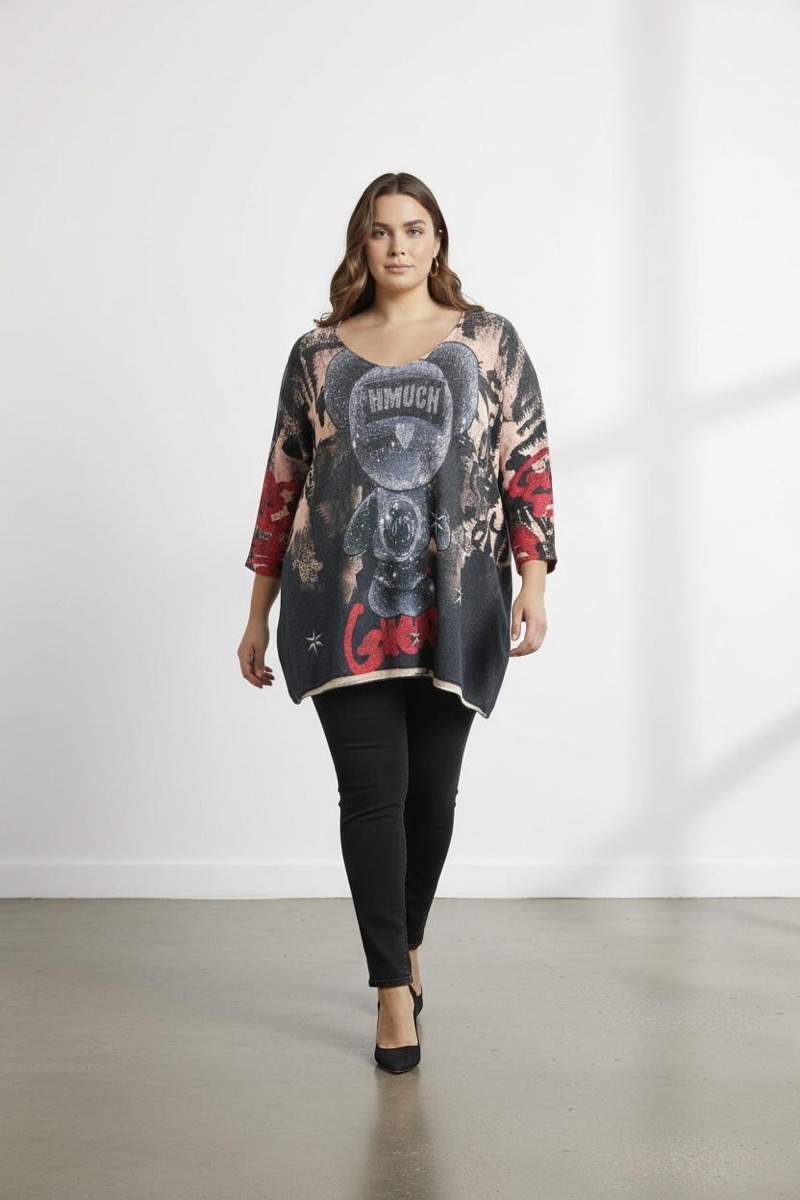 Top imprimé ours glitter – Coupe confortable & style urbain chic