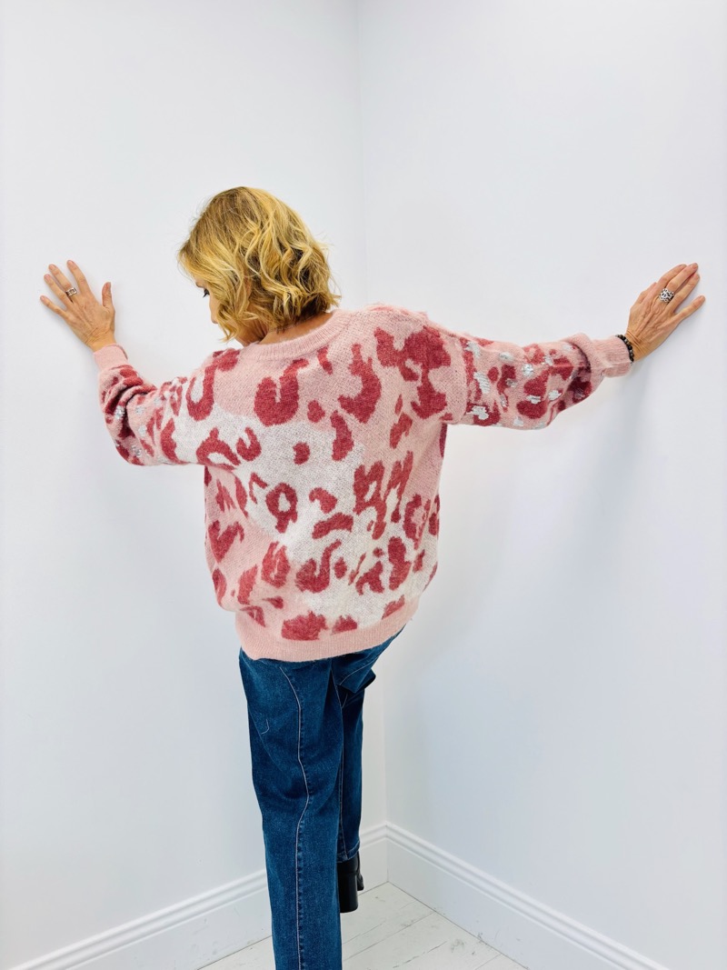 La base rose poudré et les taches léopard rosées apportent une touche féminine et originale, parfaite pour illuminer vos collections d’hiver.