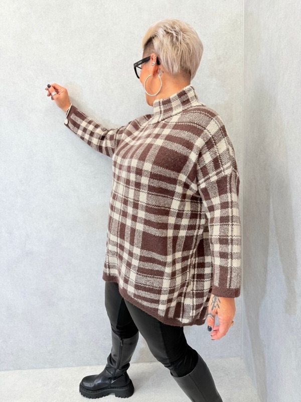 Confort et élégance s’allient dans ce pull long à carreaux, idéal pour affronter la saison avec style. Sa coupe ample met en valeur la silhouette tout en offrant une aisance parfaite pour les morphologies grande taille.