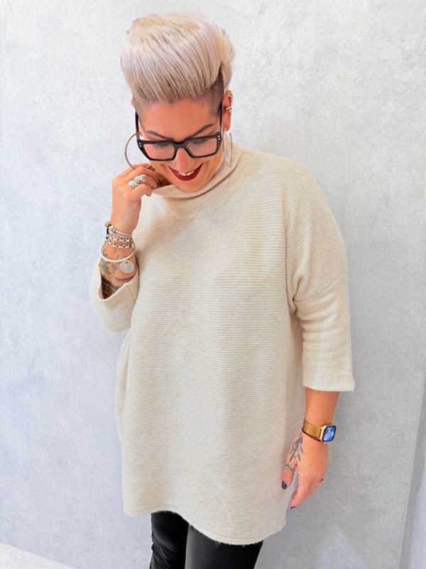 Un indispensable du dressing grande taille, alliant douceur, simplicité et élégance. Ce pull long beige offre une coupe fluide et confortable qui épouse les formes sans les marquer, idéal pour un look cocooning chic.