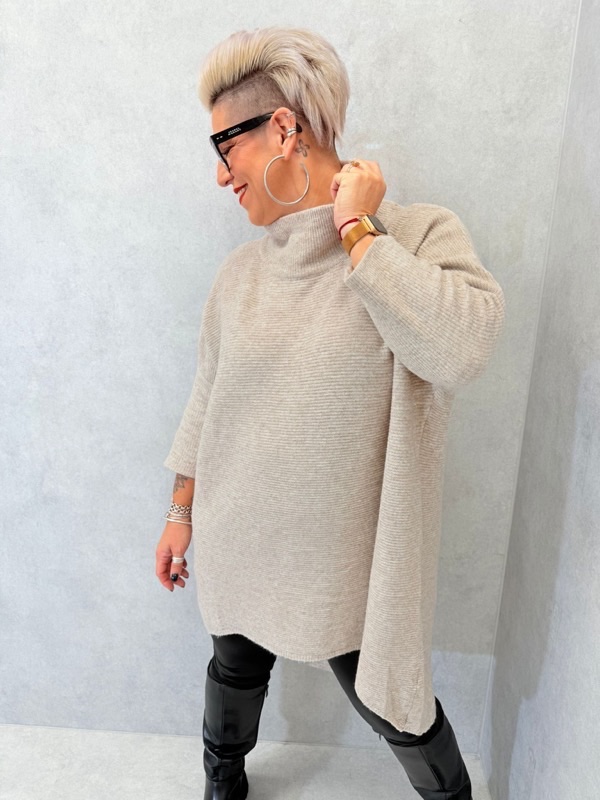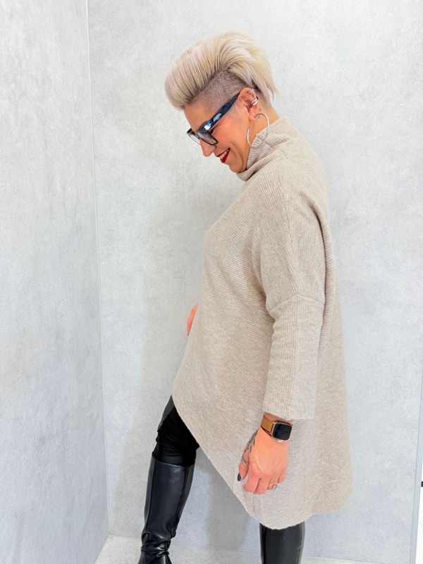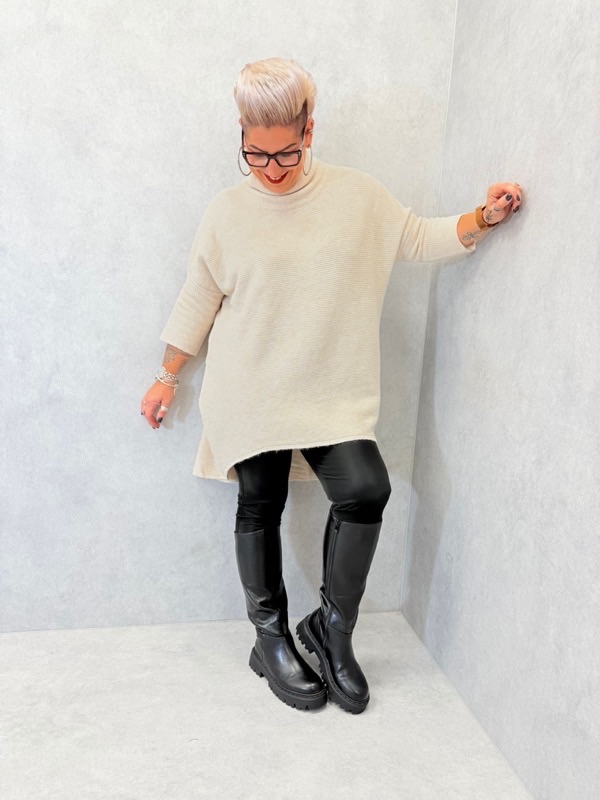 À porter avec un legging, un jean slim ou un pantalon simili cuir pour un effet moderne et confortable. Parfait pour un look automne-hiver chic et décontracté, aussi bien en intérieur qu’en extérieur.
