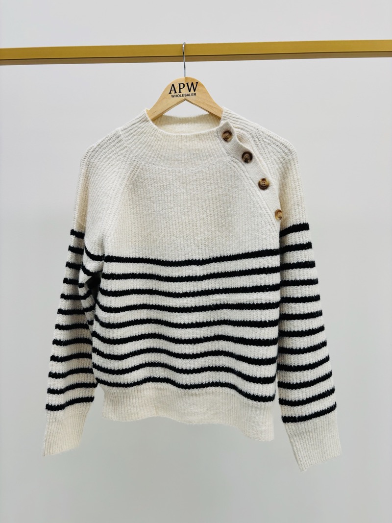 Un modèle idéal pour vos clientes qui recherchent une marinière réchauffée, féminine et élégante pour la saison.