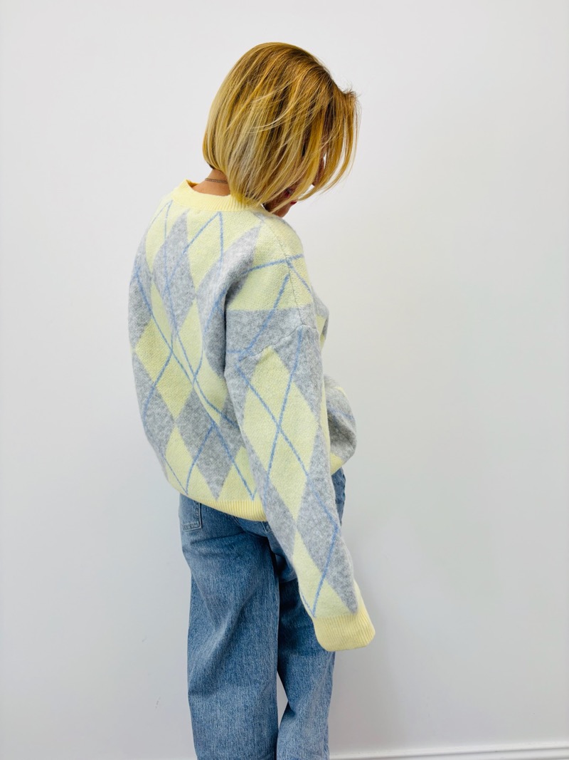 Pull Motif Argyle Pastel – Élégance Vintage Modernisée
