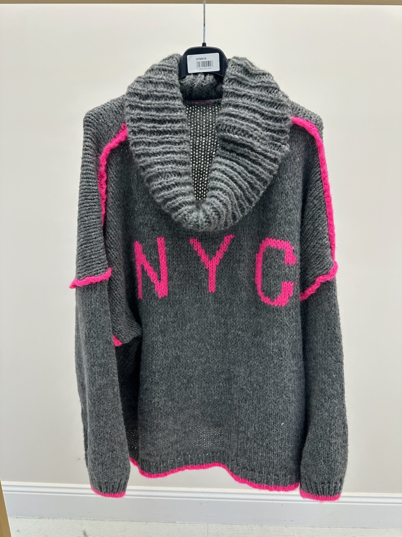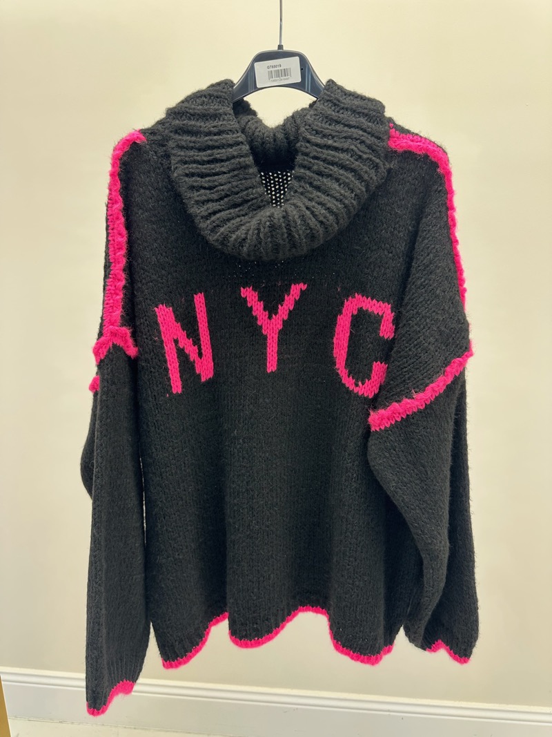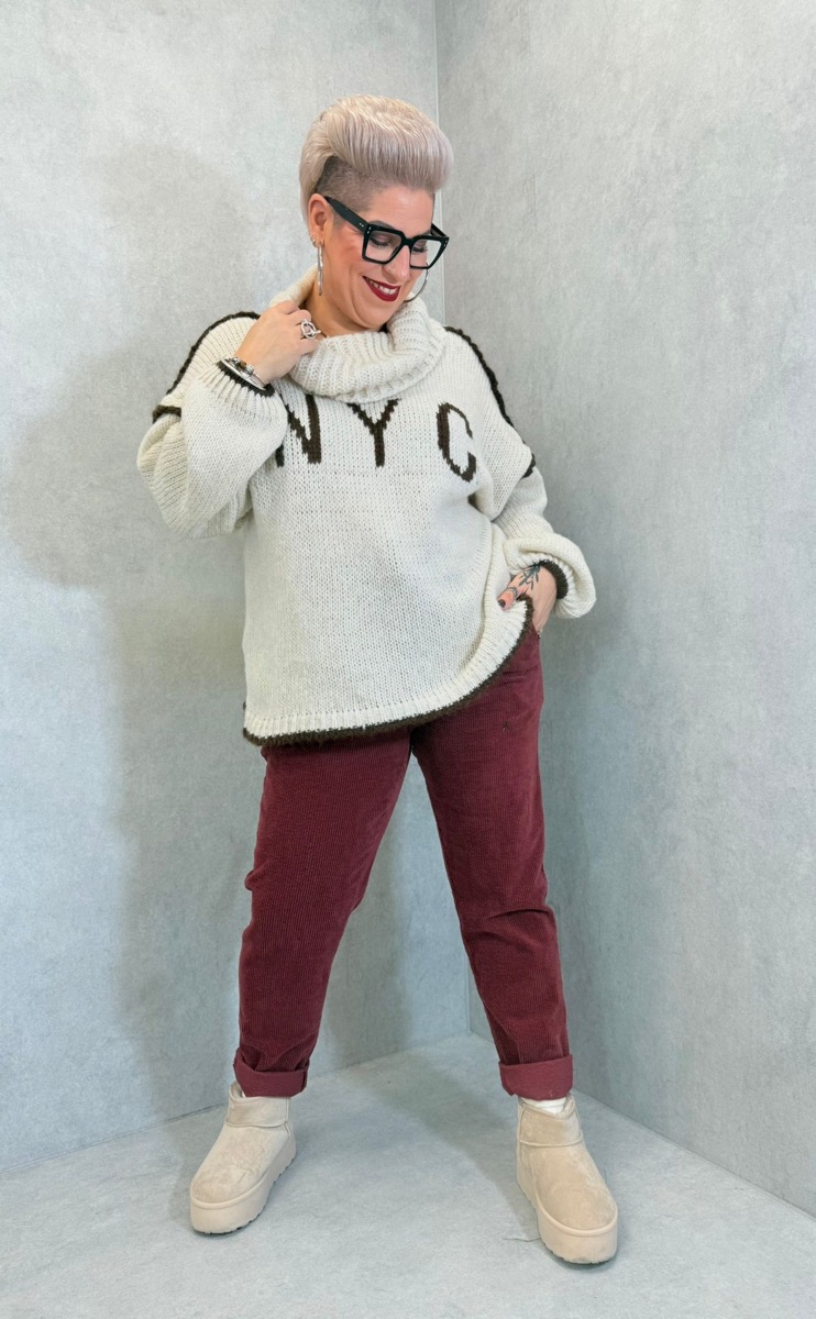 Chaleureux et stylé, ce pull grande taille affiche un esprit urbain affirmé avec son inscription “NYC” en maille contrastée. Son col roulé généreux et sa coupe ample offrent un confort absolu tout en restant tendance. Les finitions bicolores aux manches et à la base apportent une touche de caractère, parfaite pour affronter les journées fraîches avec style.