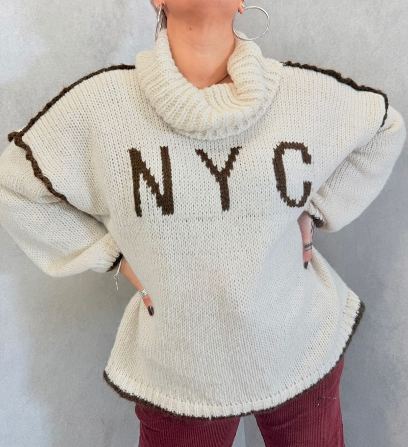 Pull oversize col roulé “NYC” – Esprit citadin et cocooning
