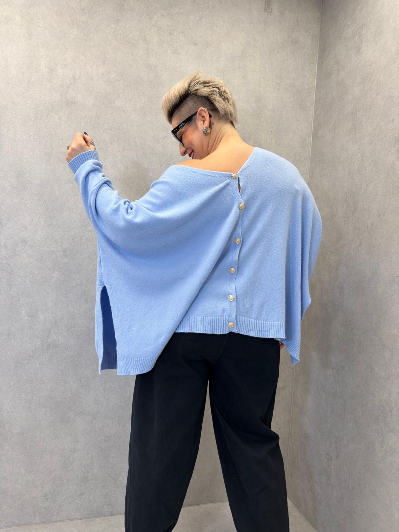 Le col V à l’avant met délicatement en valeur le décolleté et allonge visuellement le buste, un détail particulièrement apprécié en grande taille. À l’arrière, le pull révèle toute son originalité avec un dos en V sublimé par un boutonnage décoratif, apportant une touche féminine et tendance. Ce détail dos transforme un basique en véritable pièce mode, idéale pour se démarquer en boutique.